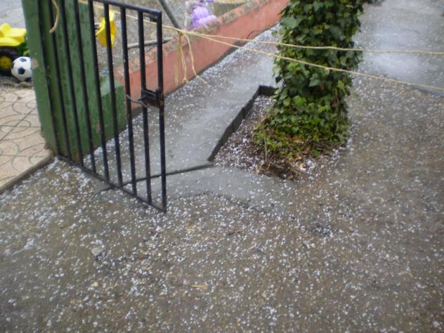 Granizo sobre el suelo de cemento,