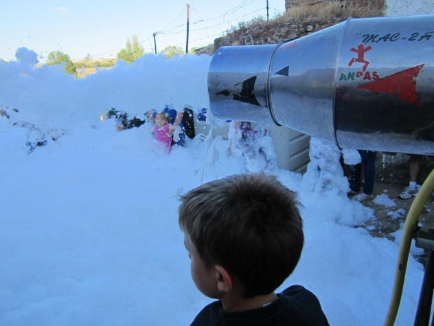 El cañón lanzando espuma,