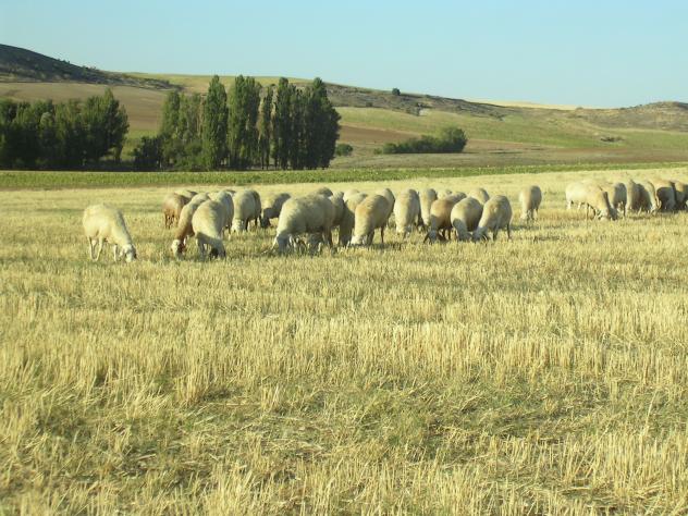 Ovejas en el espigadero,