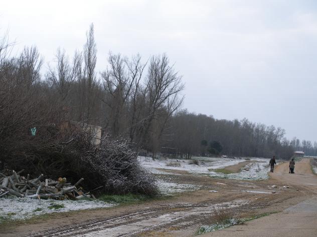Nieve en el camino molino,