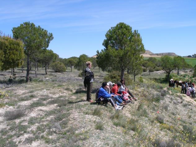 Sentados en la loma,
