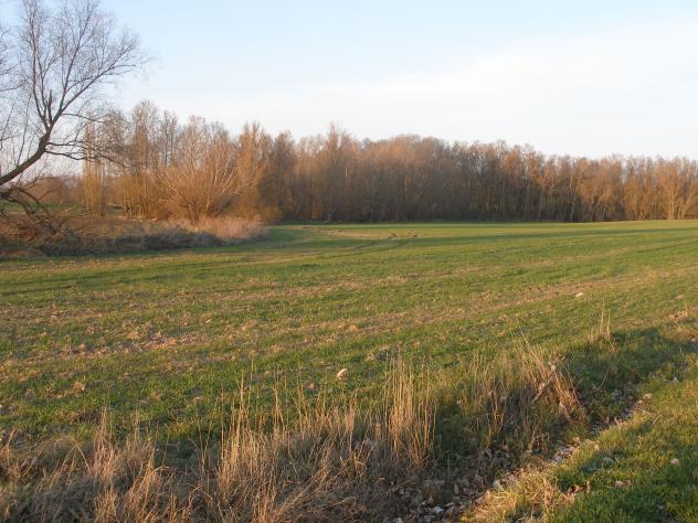 Parcela bordeada de álamos,