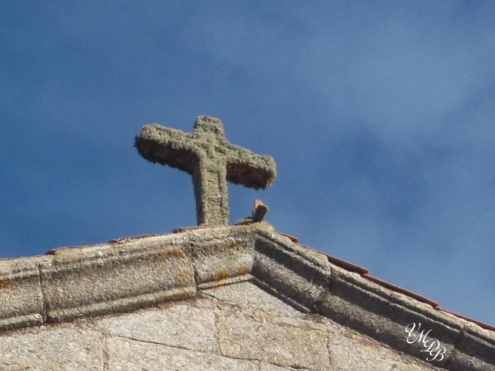 Cruz de piedra en la pared de la iglesia,