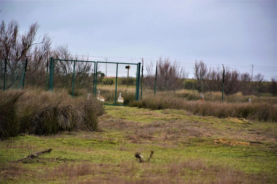 Avutardas en un cercado,
