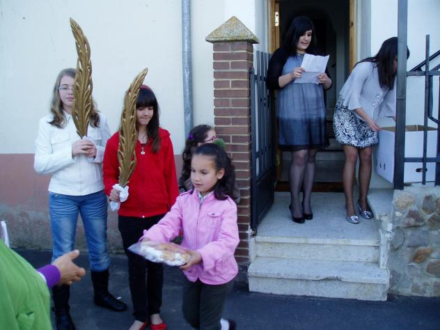 Las mayordomas reparten las típicas rosquillas a las cofrades