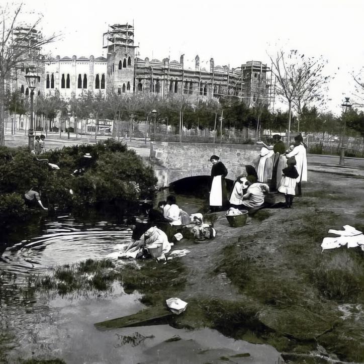 La plaza de toros y el riachuelo donde lavaban la ropa (foto antigua),