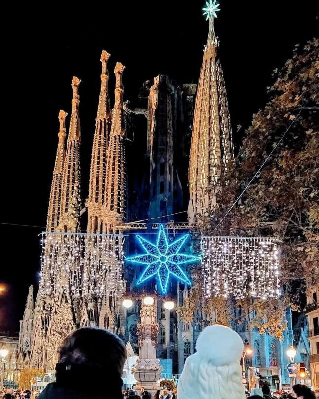 Luces navideñas en la avenida Gaudí Barcelona,