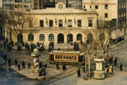 Trenes de F. G. C. entrando por Sarria,