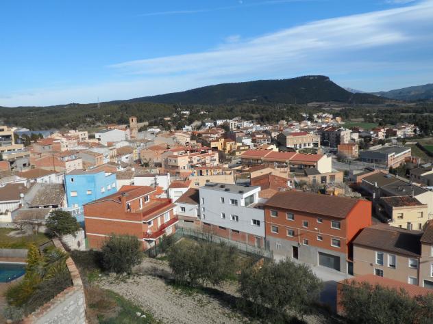 Panorámica del pueblo y el Puig d'Aguilera,
