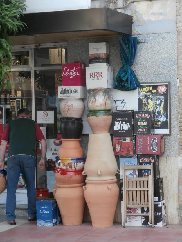 Tinajas en equilibrio en calle Pau Claris,