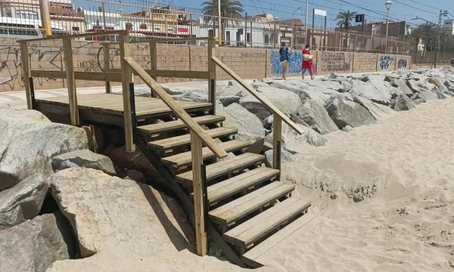 Reparada la escalera de la playa de la estación,