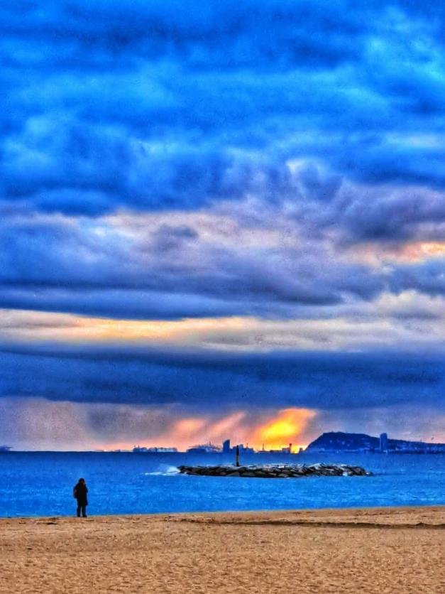 Anochecer desde la playa bella mar,