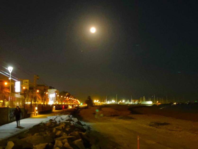 Luna llena playa iluminada puerto de premia,