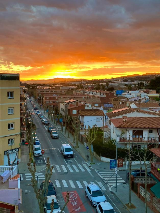 Puesta de sol zona Gran Vía a la altura de la farmacia,