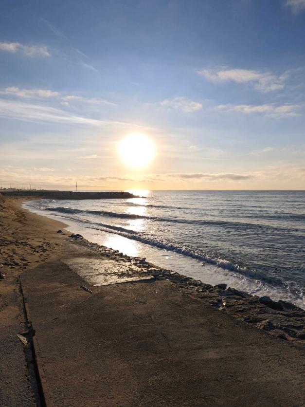 Amanecer desde la playa bella mar de premia,