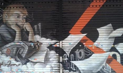 Pintura abstracta. sobre valla,