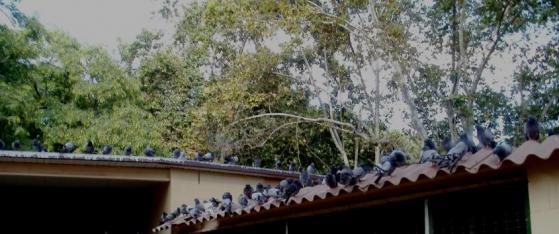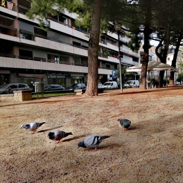 Palomas alimentándose,