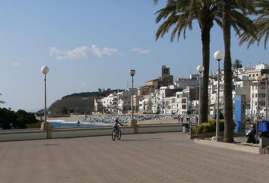 Bordea la línea de la costa. Al fondo se distingue la Platja de les Barques, situada justo frente al casco urbano.
