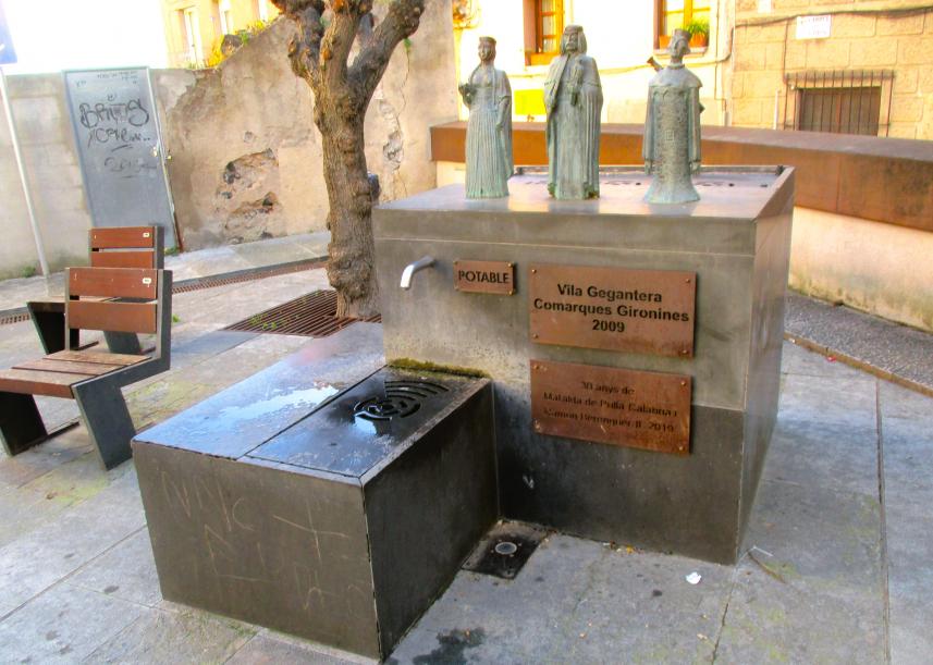 fuente de la Plaça de la Vila, lugar de concentración habitual de la colla gegantera, la agrupación de personas que portan a los gigantes en los pasacalles y las