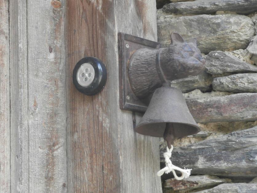 Campanilla en la puerta y linterna,