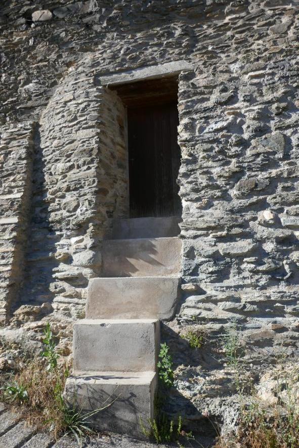 Escalones peculiares para entrar a la puerta,