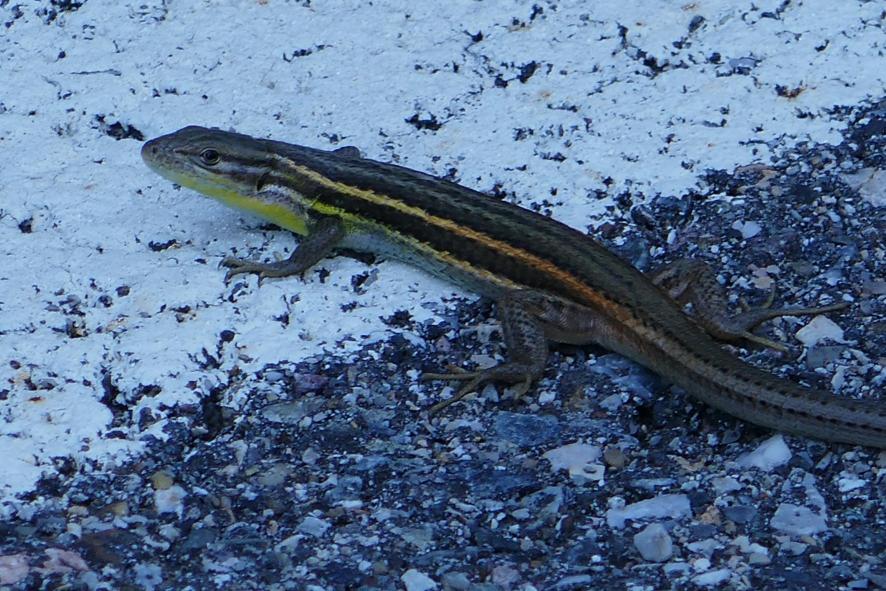 Una lagartija morena en la carretera,
