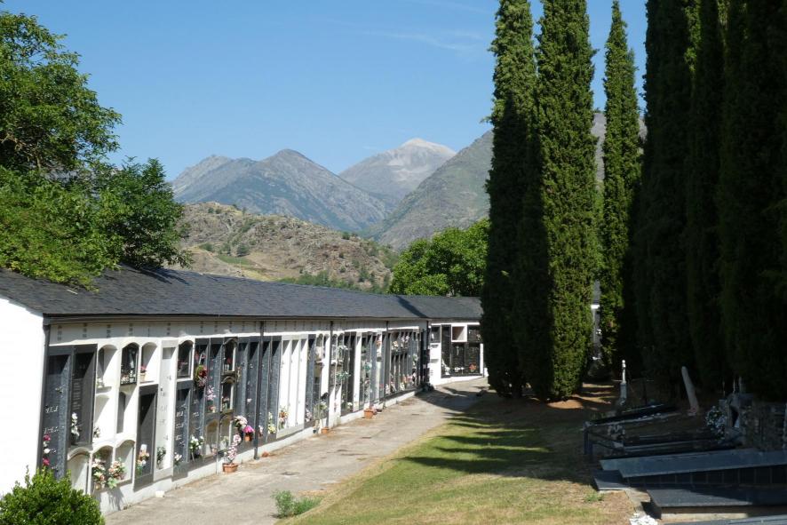 La alta montaña como fondo al cementerio,