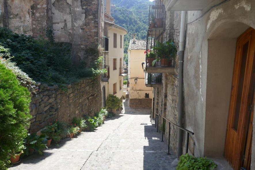 Muchas macetas adornan la calle,