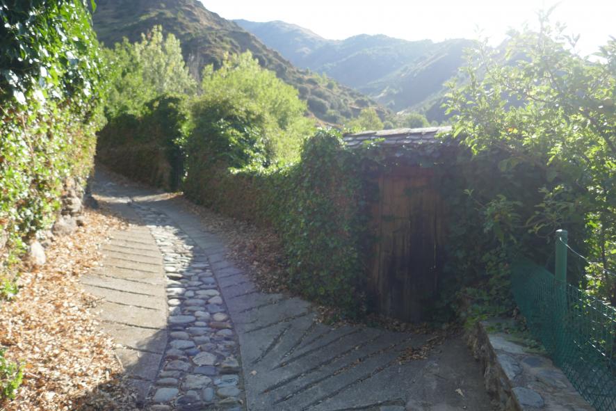 La subida a la iglesia es de cemento rayado,