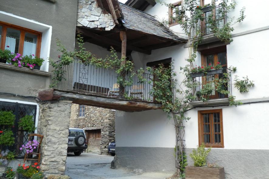 Un paso voladizo con balcón,