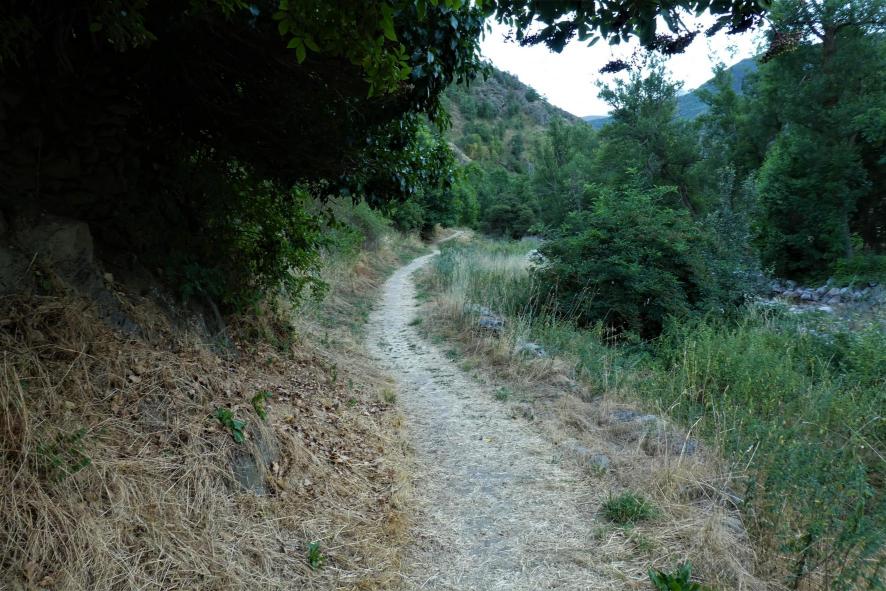 Un camino sale del pueblo hacia el sur,