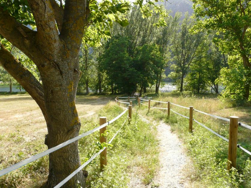 Camino balizado de entrada a un bunker,