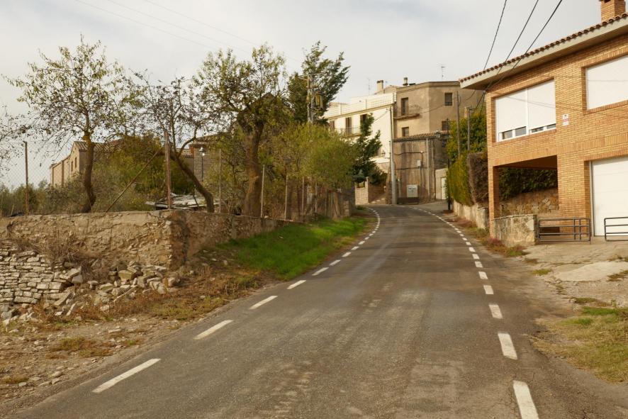 La carretera entra al pueblo en subida,