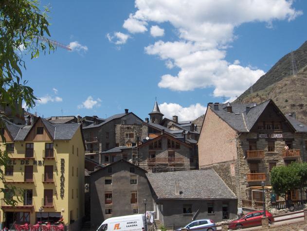 Vista del pueblo con el campanario al fondo,