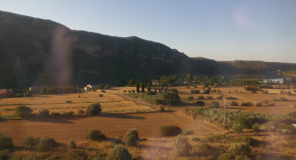 El embalse con la montaña a un lado y el llano al contrario,
