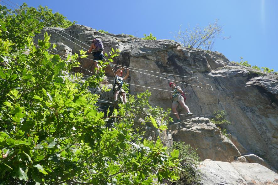 Pasando el puente tibetano de la ferrata,