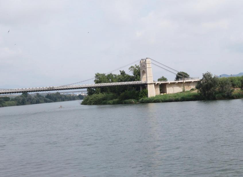 Río Ebro y torre norte del puente colgante,