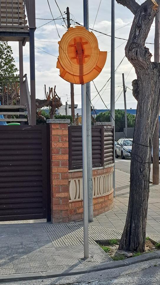 Espejo colocado en su día para facilitar la salida de vehículos del parking privado de la calle Pablo Picasso 5 / 7 de SEGUR DE CALAFELL (Tarragona)
