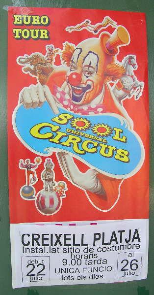 Cartel del Sool Universal circus, que estuvo de gira en España durante 1 año y medio por el sur y el levante español, pero sobre todo por Cataluña.Este circo regresó a Italia hace 3 semanas y medio, y actualmente está trabajando en Roma(hasta el 3 de Noviembre).