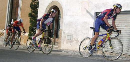 Raúl Martínez, del equipo del Fútbol Club Barcelona - Excelent, vencedor del G.P. De Els Pallaresos, entrando en la meta, seguido del corredor Bruno Montull del Club Ciclista Aragonés - CAI.-