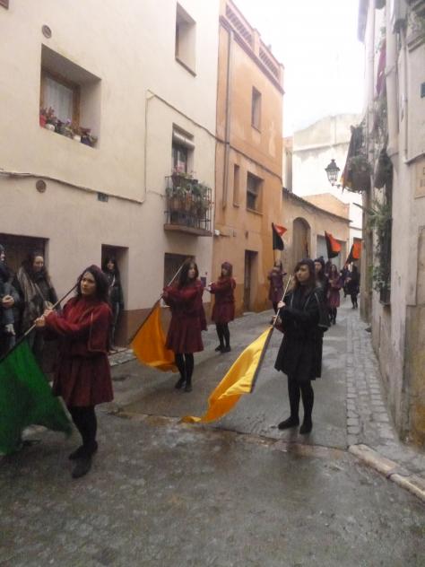 Desfile por una calle angosta,
