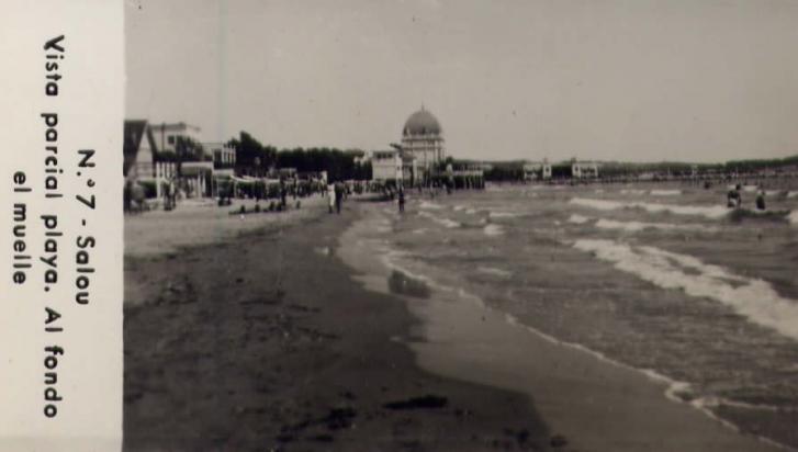 Playa y al fondo el muelle (foto antigua),