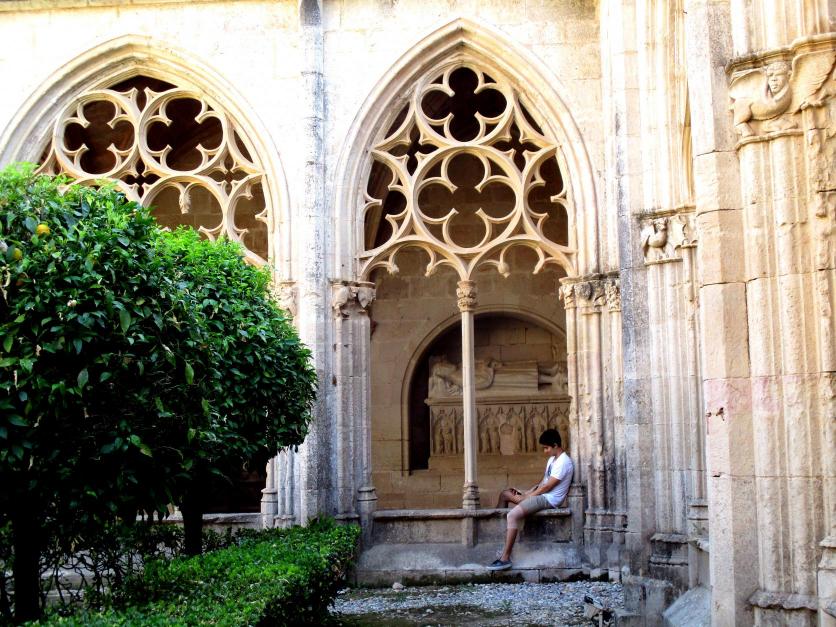 Ventanales góticos del claustro del monasterio,