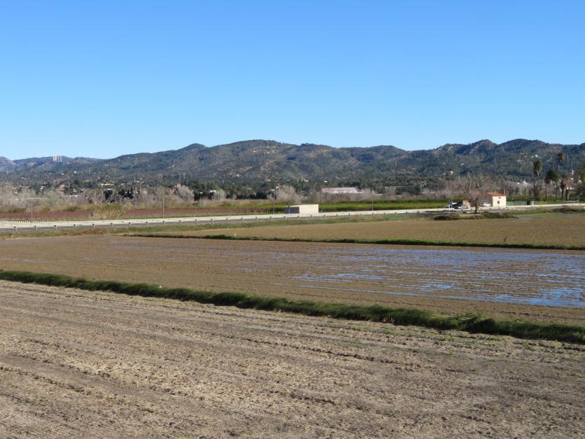 Arrozales que lindan con el pueblo,
