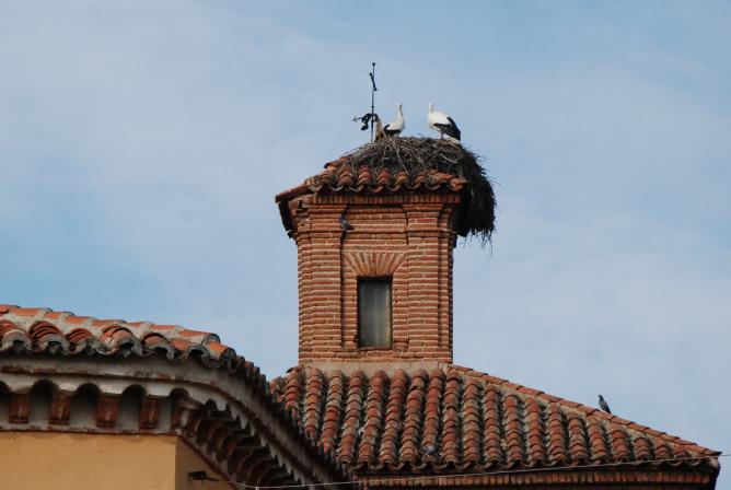 Cigüeñas en el tejado,