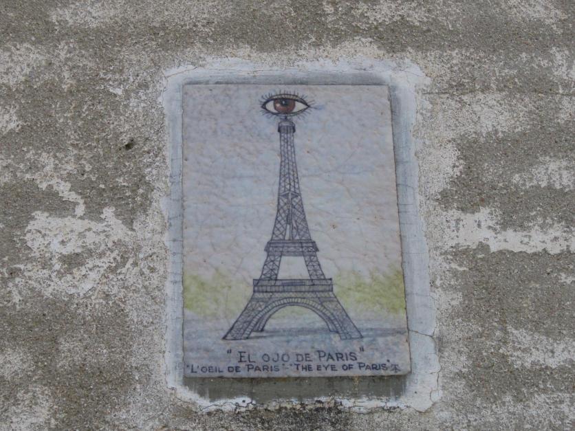 Azulejo de Talavera llamado el ojo de París en uno de los arcos del Monumento a los Ojos,