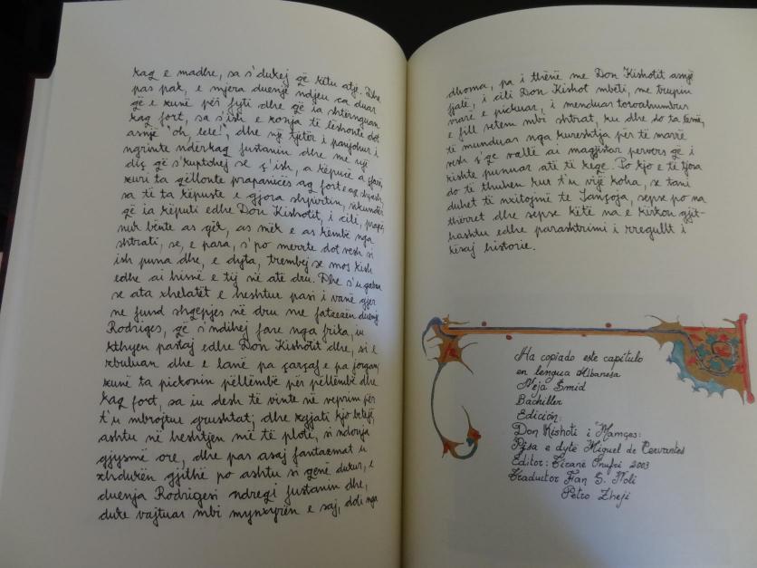 Esta versión impresa realizada a mano, lleva traducciones a 67 lenguas diferentes, y va ilustrada de la mano de los propios amanuenses.