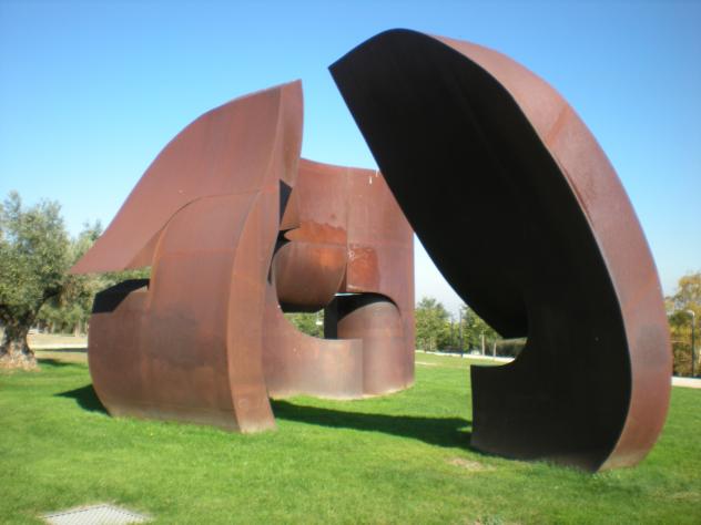 es en recuerdo al fundador de la física moderna, compuesto por tres volúmenes densos y ondulantes, que giran alrededor de un eje invisible. Autor Amadeo Gabino Uceda, 1992.