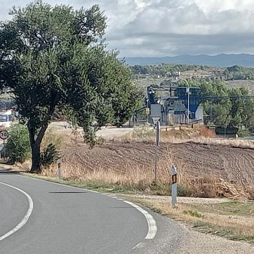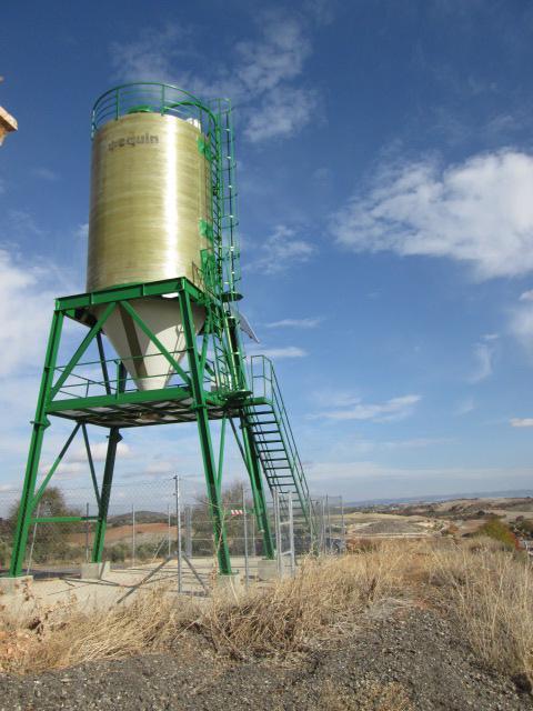 Silo metálico junto a la carretera,