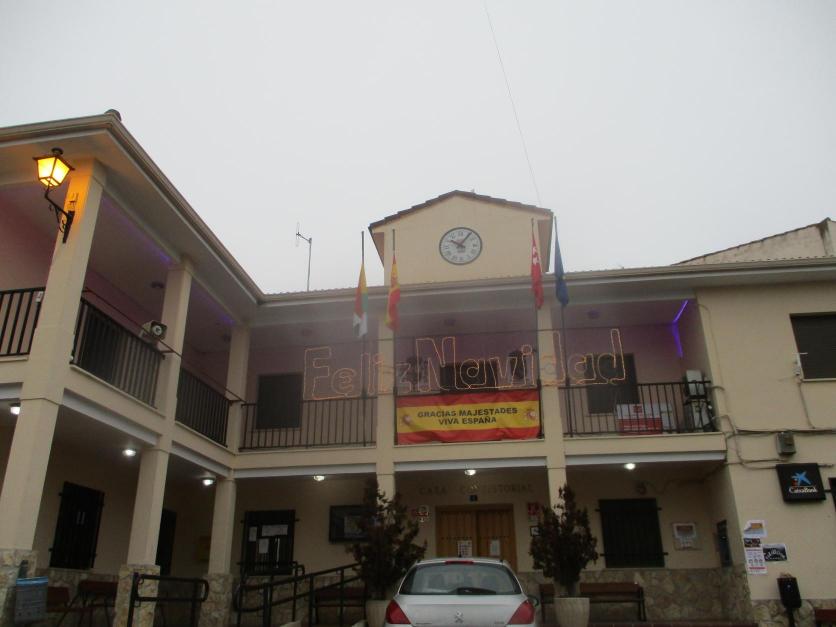 El edificio del Ayuntamiento con la decoración navideña,